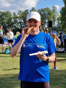 Für den gelungenen und teils anstrengenden Trainingslauf belohnte ich mich selbst mit direkt zwei weiteren leckeren Bratwürstchen. Was für ein gelungener Freitagabend!