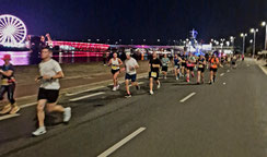 Danach wird die Strecke etwas unspektakulär, ab hier kann man sich mehr auf seinen Körper und den eigenen Lauf konzentrieren. Auf der zweiten Runde wurde es dann auch noch deutlich leerer auf der Strecke, da die Halbmarathonis nach der ersten Runde sich bereits im Ziel feiern lassen konnten. Auf Grund der späten Uhrzeit, waren bis auf ein paar Ausnahmen nicht besonders viele Zuschauer an der Strecke, und wenn, dann eher auf der ersten Runde.